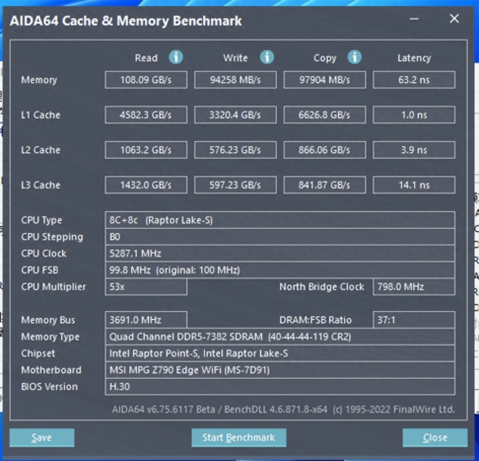 读写表现进一步提升,达到了108.09BG/s和94258MB/s,并且令人意外的是,CL40的延时反而有所提升,达到了63.2ns。此时系统依然相当的稳定,打了一盘LOL也没有出现意外状况。