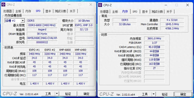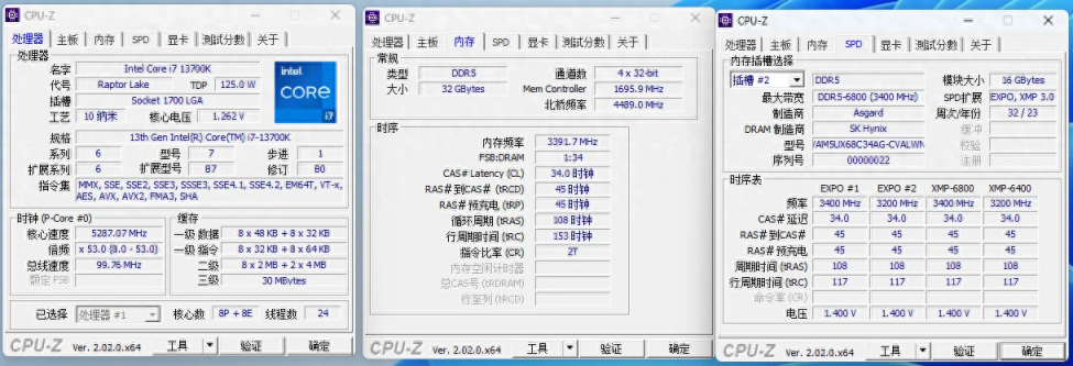 超频后,可以看到阿斯加特Asgard女武神已经运行在6800MHz的水平,CL34-45-45-108的超低时序也令人相当满意。