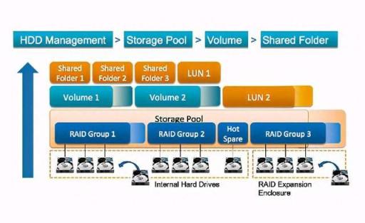大家都知道是使用硬盘来作为存储,但是如果到了NAS系统,硬盘是以什么形式来存储的呢?首先我们来了解一下存储池与存储卷的概念。