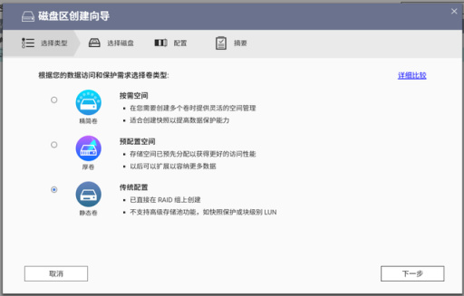 (4)选择传统配置,也就是静态卷。一般推荐新手都选择静态卷。