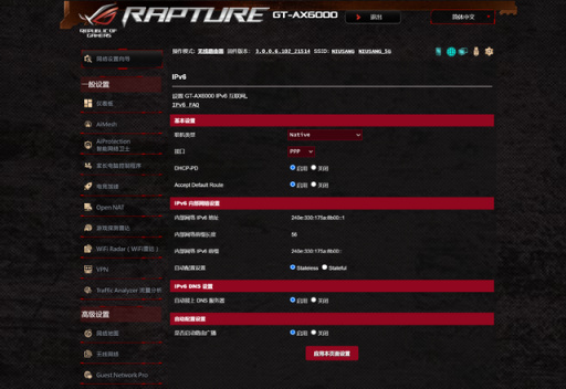 首先是光猫接在路由器上面,我使用的华硕AX6000红蜘蛛路由器。目前来说,只要是wifi6路由器都行,现在的路由器质量都不差,尽量选择满血wifi6路由器。