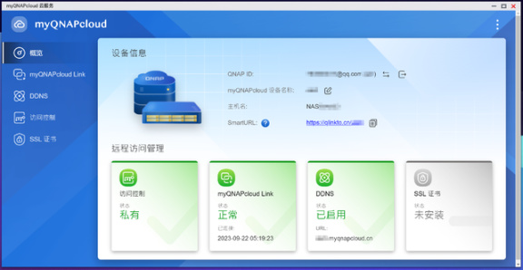 其次是myQNAPcloud,这是一个账号登录的地方, 管理自己的账号,如果要外网访问必须要把账号设置好才可以。