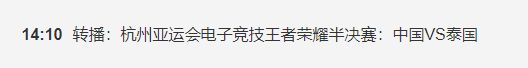 今天下午,杭州亚运会电子竞技项目,《王者荣耀》组迎来了中国队与泰国队的半决赛,最终中国队2:0战胜泰国晋级决赛。本场比赛央视体育以及CCTV5+频道都进行了转播。