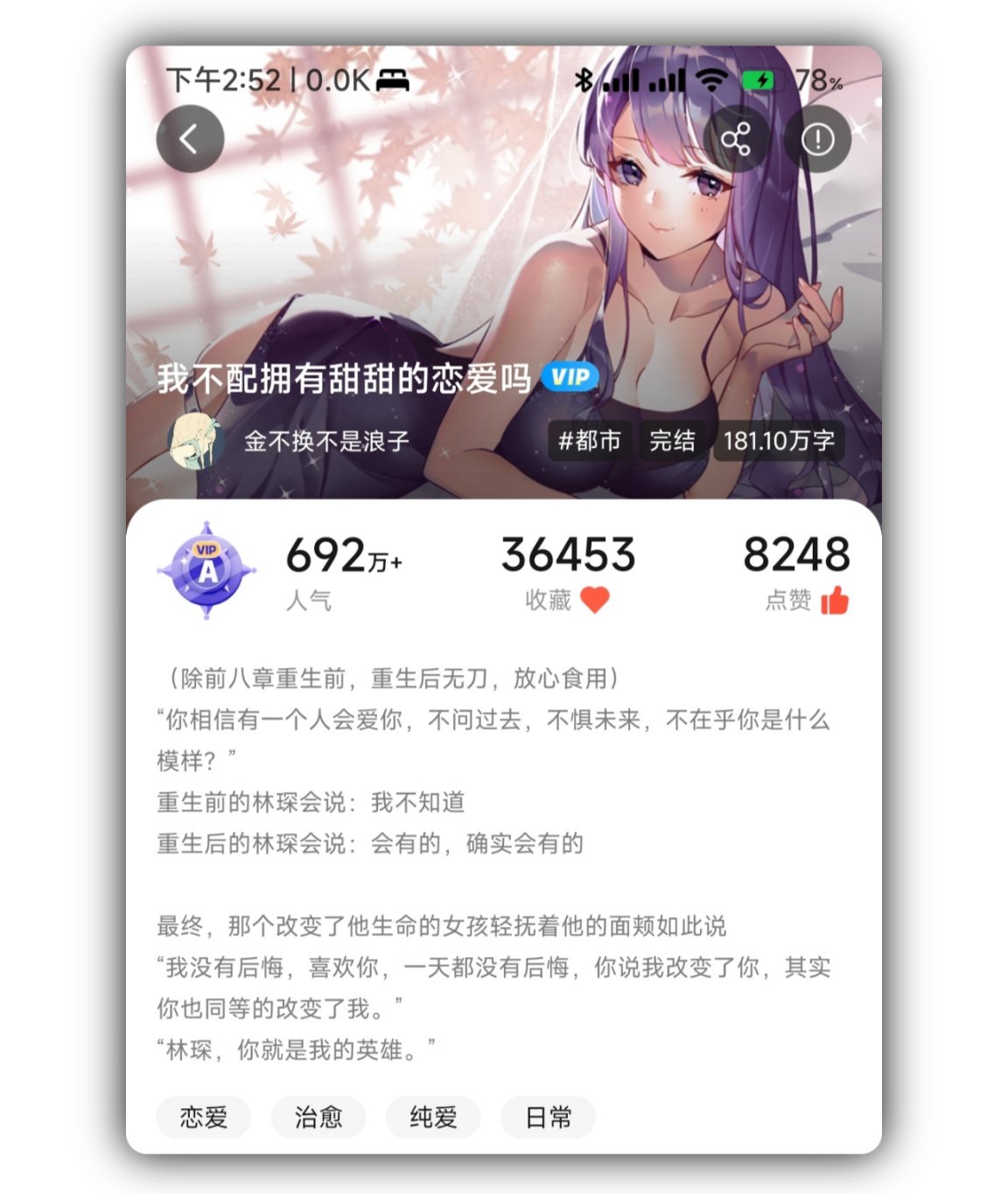 一個神中神的純愛文、治癒文,評論區甚至有個讀者評價說:深度足夠出版,一本不輸春物(《我的青春戀愛物語果然有問題》)的神作,在菠蘿包上甚至是個遺憾。