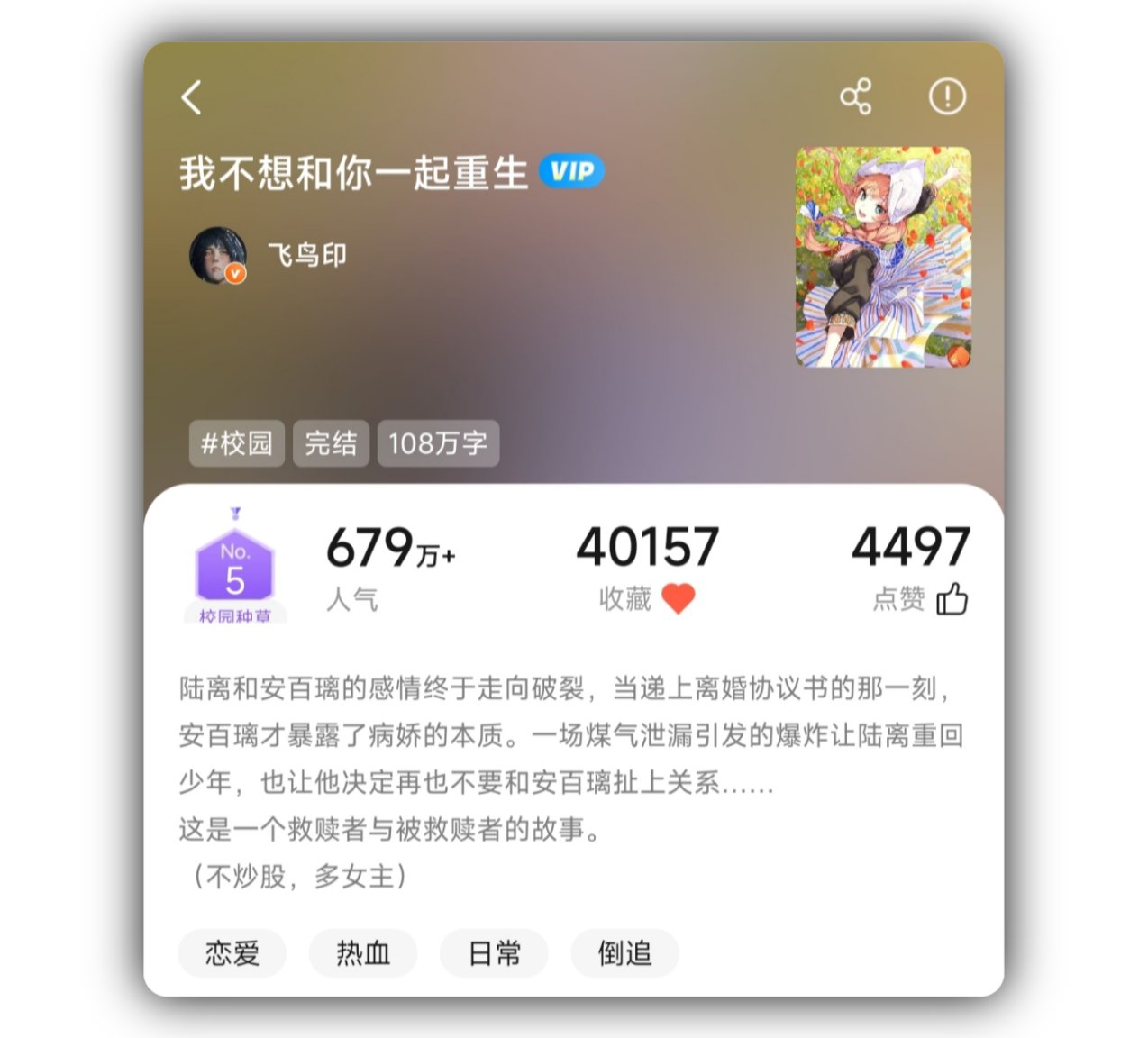 成績也不必多說,用過菠蘿包的都知道這成績有多好。我甚至在番茄看到過一本開頭極其相似的,幾乎是照着這本劇情線寫的,書名都在碰瓷。