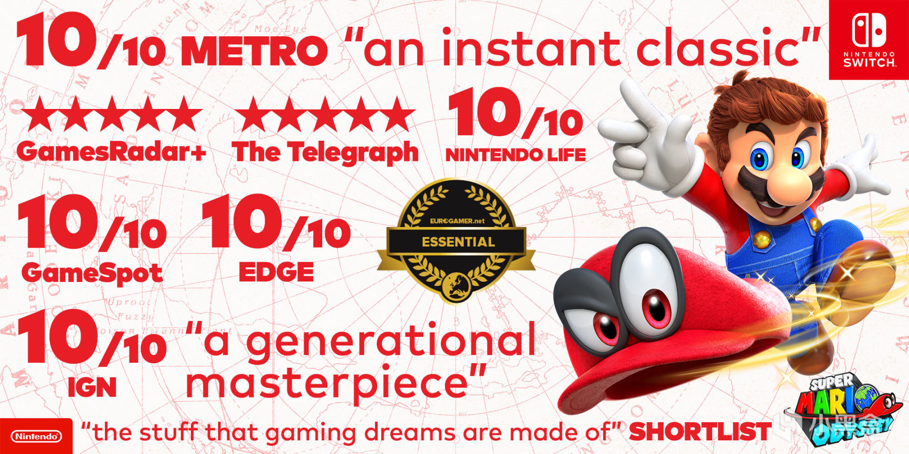 《超级马里奥:奥德赛》于2017年10月27日发售,游戏几乎每个角落都得到了充分的利用,各种各样的平台挑战和谜题,让玩家自始至终都会觉得充满乐趣!