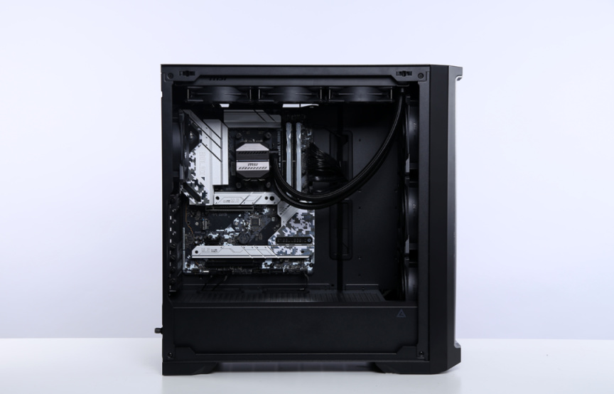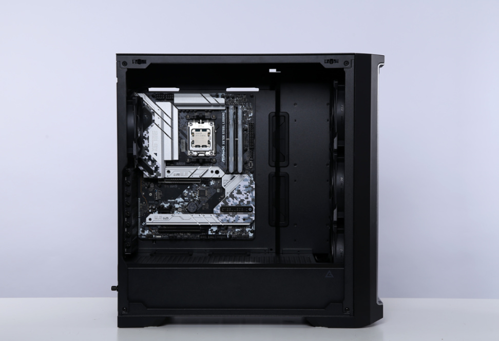 機箱整體採用模組化設計,擁有充沛的內部空間,最大可支持EATX規格主板安裝,顯卡限長也達到400mm。散熱方面,風冷限高175mm,支持前置安裝360/420規格的水冷,頂部也支持安裝360規格的水冷。機箱最多可同時安裝10把散熱風扇(含電源倉上方的3個風扇位)。機箱標配4把加厚風扇,可以提升機箱內部的散熱效率。