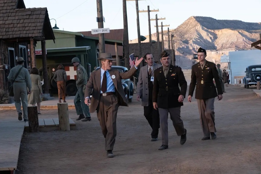 但是故事就是在此发生转折,在曼哈顿工程开展时一直到三位一体实验成功的那一刻,奥本海默都是极力赞成此工程的,那时的他就像一位正在等待孩子出生的母亲,一位即将走上王座的王子一样,墨菲把一位物理艺术家即将完成自我意义的实现与满足的状态表现的淋漓尽致。