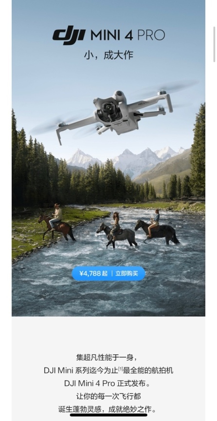 9月25日,大疆正式發佈了新款航拍無人機Mini 4 Pro,售價4788元起。與Mini 3 Pro相比,在視頻規格性能、避障能力、圖傳能力以及智能功能方面有不小的提升,成爲Mini系列迄今爲止技術和性能最全面的產品。