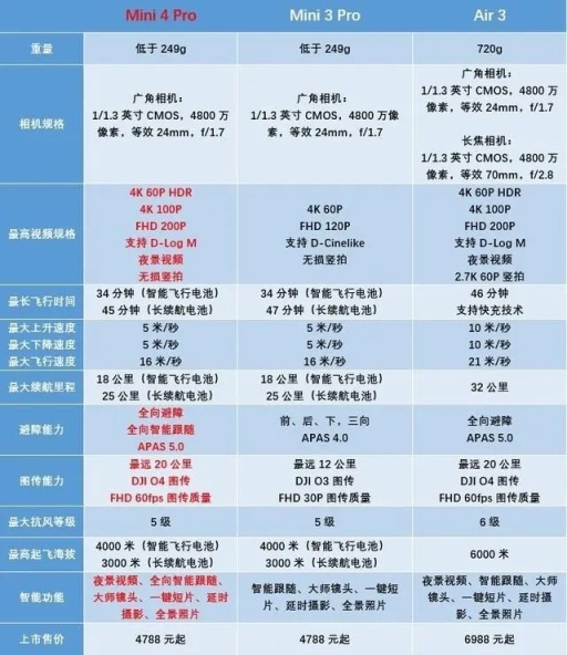 DJI Mini 4 Pro提供四種版本:RC-N2 4788元、與當時Mini 3 Pro的上市售價持平;RC2 5988元、RC2套裝6988元、RC2長續航套裝7388元。