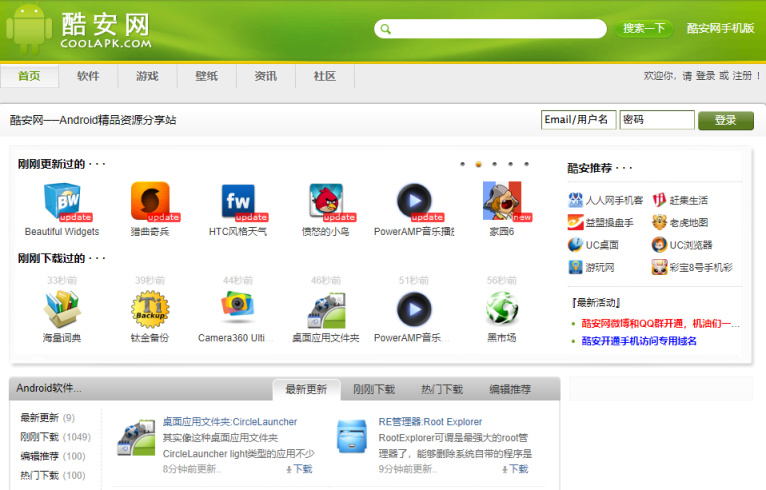 當時的酷市場尚無手機客戶端,只有簡陋的網頁端,其中除開作爲應用市場的軟件分享站之外,還開放了酷安社區來供用戶上傳應用、定製ROM、主題和插件。同時,由於酷市場上傳的多是國內下載不到的國外應用,所以廣受好評。當時有句吐槽,說的是酷市場的應用更新比GooglePlayStore還快。