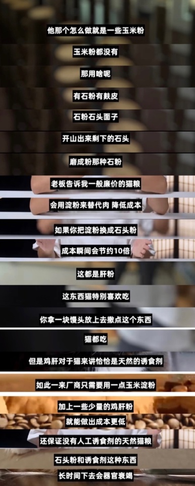 下图来自@亚军频道 暗访猫粮厂商视频截图