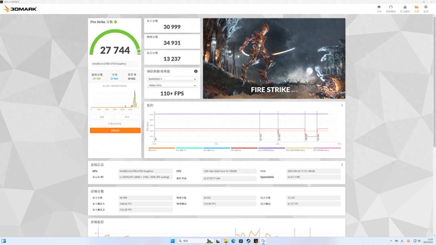 紧接着3DMARK的测试,本次对蓝戟Intel ARC A750显卡的3D MARK做了五项测试。