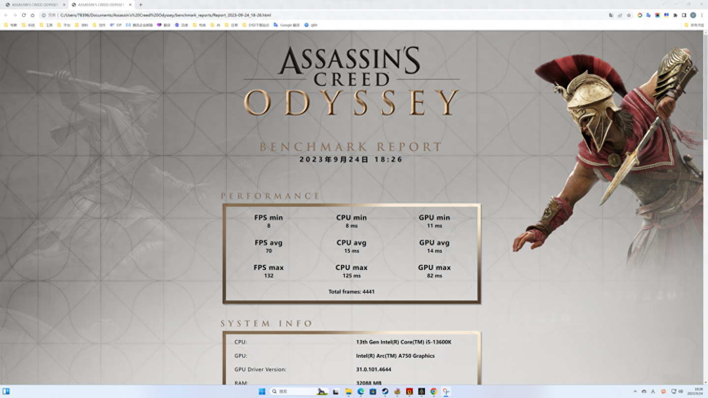 最后是 刺客信条:奥德赛,在1080P分辨率下的平均帧在70帧,而2K分辨率的帧数则是59,该帧率可以流畅运行,这款游戏表现也算不错。