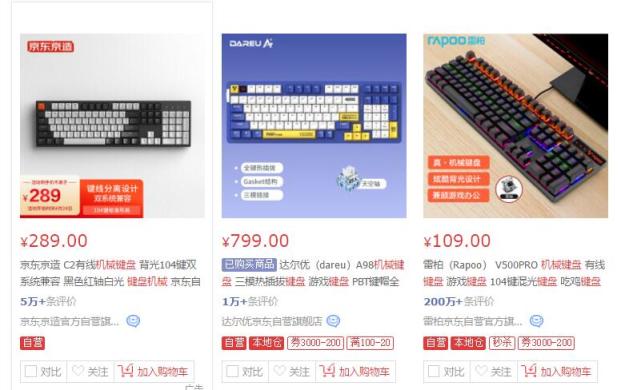 不过市场上出现了一条鲶鱼,著名网吧外设品牌——网际快车,推出了299元的机械键盘,这也是主流机械键盘第一次被打进300价位。虽然这款网际快车G100做工非常拉跨,颜值现在看起来也呆头呆脑还是仿得一款韩国键盘,而且只有黑轴可选。