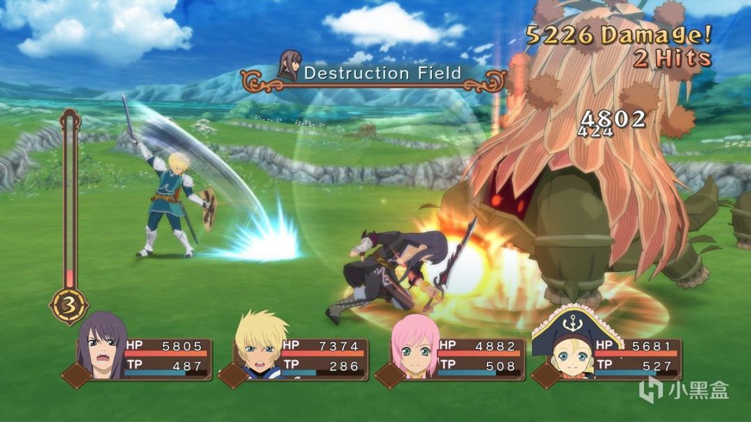 傳說系列最具代表性的特色系統,莫過於類似街機動作遊戲的手動戰鬥,從初代《幻想傳說》的“線性動作戰鬥系統”(Linear Motion Battle System,簡稱LMBS)開始,每部作品都有改進,並衍生出更長更復雜的新名詞,這也成了傳說玩家一個經典梗。這次的《薄暮傳說》進化爲“進化自由換線線性戰鬥系統”( Evolved Flex Range Linear Motion Battle System,簡稱EFR-LMBS),最重要的變化就是加入了“一擊必殺”功能,每個敵人都有特定的一擊必殺耐久值,攻擊命中可以讓耐久值不斷下降直到0,這時就可以使用一擊必殺了,不同的角色招數和敵人類型,一擊必殺的時機也不同。