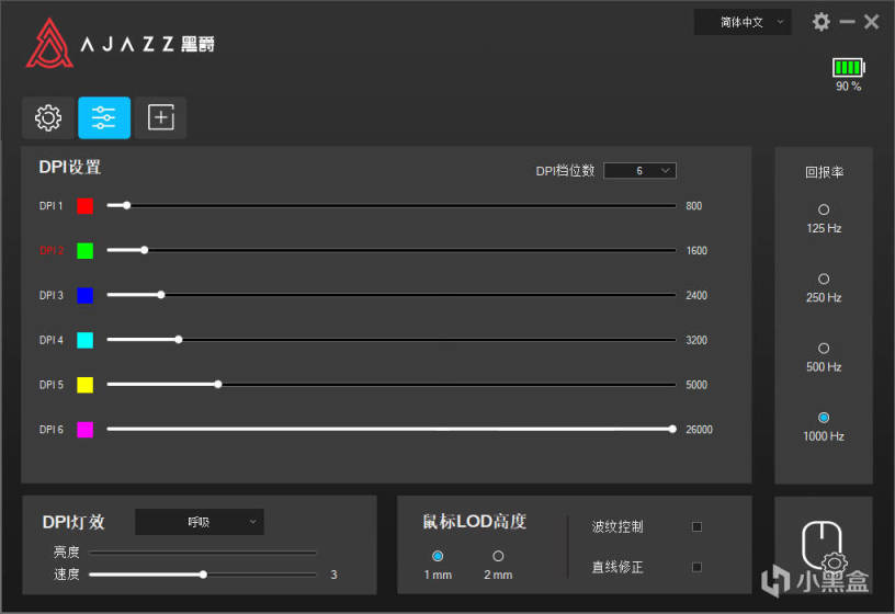 说完拆机,再来简单说一下鼠标的驱动,驱动界面十分的简洁,大部分玩家需要的调节选项里面都有。