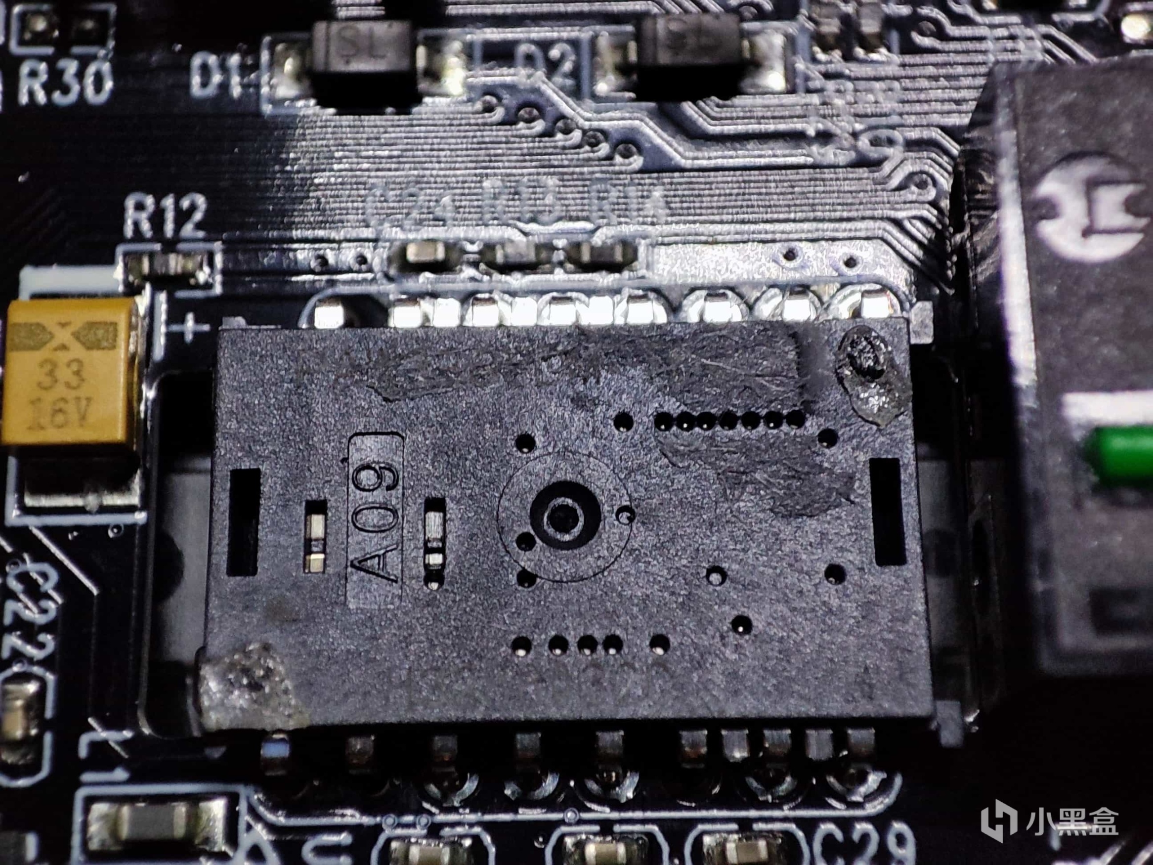 将电池揭下,可以看到固定在独立小板上的侧键。