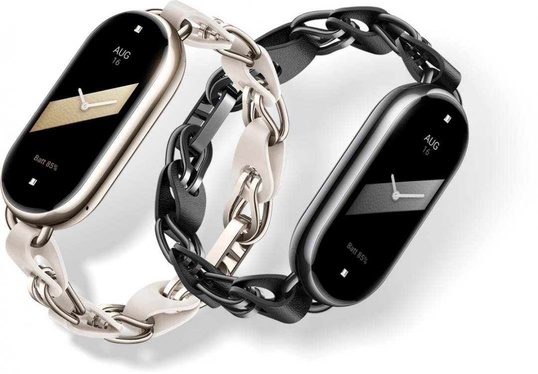小米智能手环 8 还提供多种官方表带可选,材质包括皮革、尼龙织物和金属,风格各异。小米还提供了一个吊坠配件和一个夹子,可以夹在鞋子上,以便进行更高级的追踪和动作监测。
