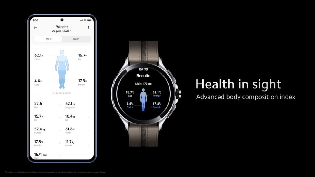 小米 Watch 2 Pro 提供全天候心率和血氧监测,以及睡眠和压力监测。还支持超过 150 种运动模式的活动追踪,并配备了生物电阻抗传感器,用于估算身体成分指标,如体脂率和肌肉量。