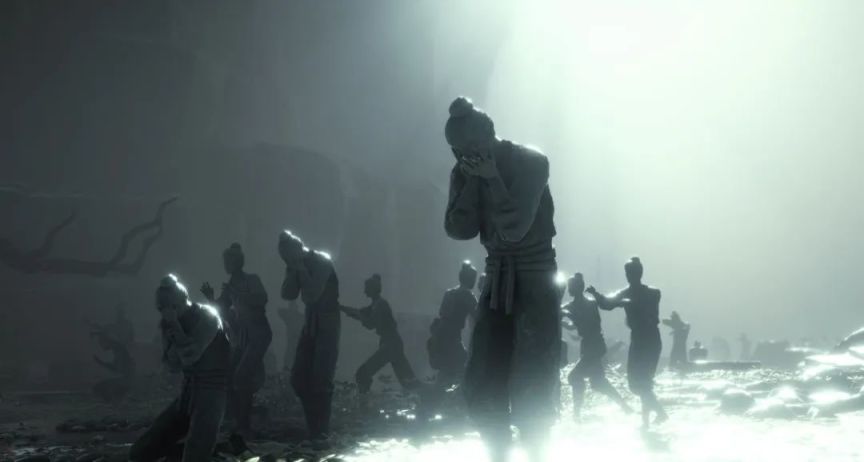 到了这里,谁都觉得这是一个和之前地洞一样的战斗关卡,但其实不是,它是解谜关卡。枯井之下是一群不会主动攻击、也无法被杀死的无面人,他们藏身阴影,等着什么消息。结果到了洞穴深处,才发现这里能解锁武学系统。