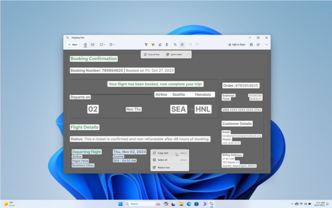 要使用屏幕录制功能,只需按 Win + Shift + R 或 Print Screen。此外,为了帮助进一步简化用户使用截图工具的工作流程,微软引入了两种新的文本操作 —— 文本提取和编辑。