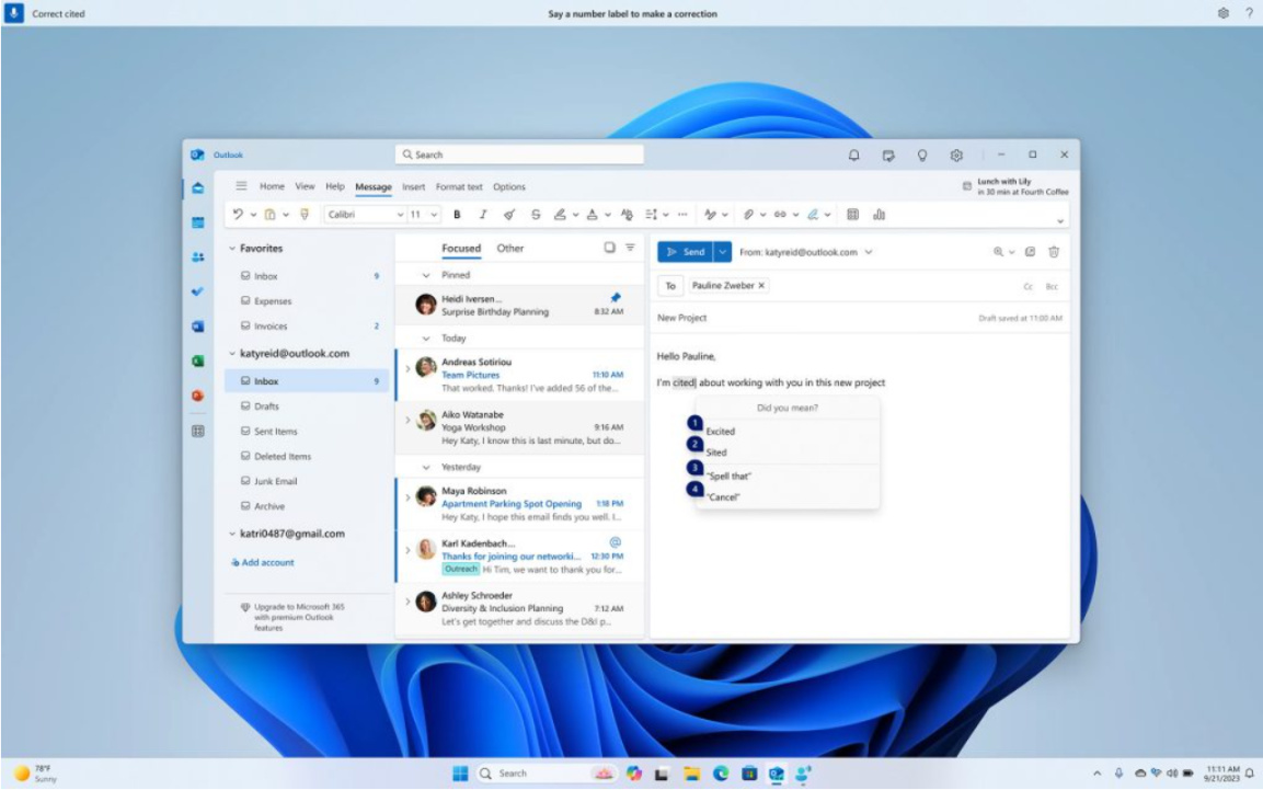 用户现在还可以通过新的拼写体验听写复杂和非标准的单词,并且更正功能将修复错误识别的单词。