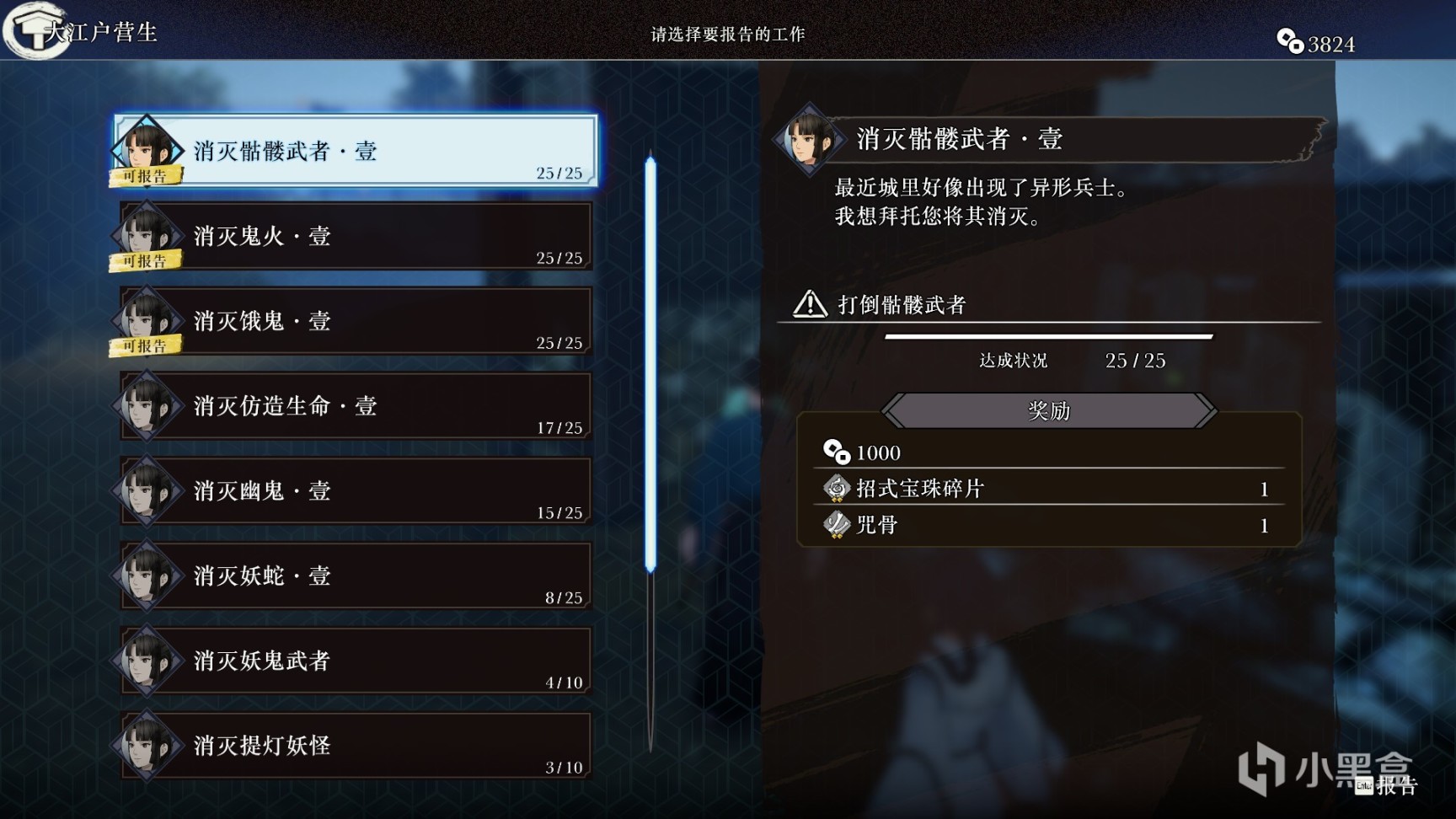 同时,FSR在玩家探索的正反馈激励上也花费了不少心思,玩家不仅仅可以通过完成不同城镇的考验来获取各式各样的奖励,也能够通过在探索期间累积的相关数据,来推进助之进、山吹、蔡玉莲三人的大江户营生委托,来获取更加可观的委托报酬。这些在探索和战斗中时刻结算的委托进度,能够带给玩家充实的成就感,从而让玩家热情投身于探索且乐此不疲。