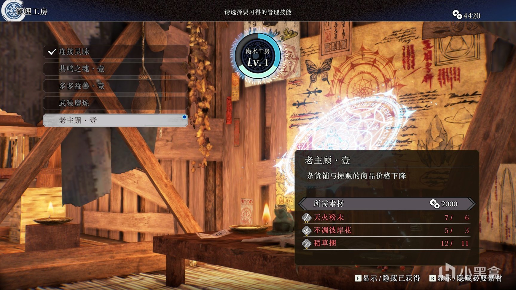 而除了技能树解锁以外,游戏中还引入了魔术工房升级以及装备词条两个维度的养成玩法。