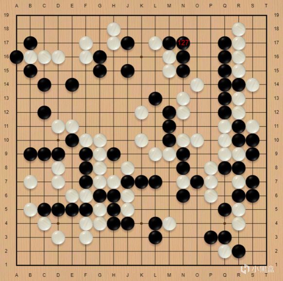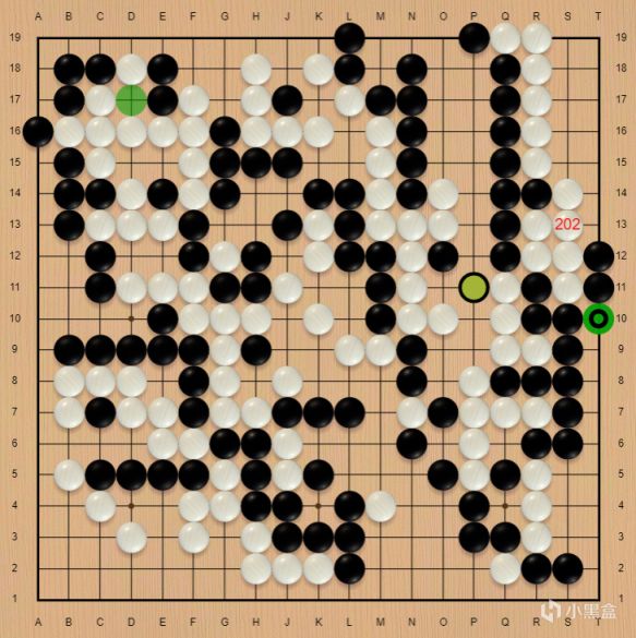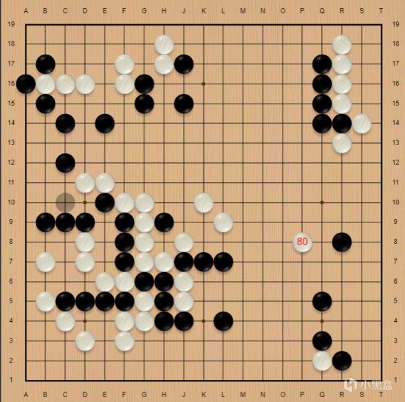 后续的作战中,柯洁角上还没处理干净,同时中腹两片大龙均未安定,然而混战正是柯洁的强项,后半盘又是经典的柯洁过山车式对局,伴随着柯洁白棋右边的大龙连回角上,双方胜率重回五五开!