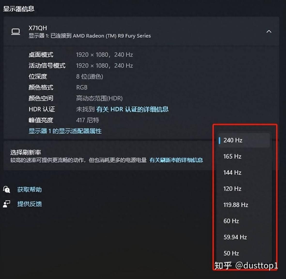 分辨率和刷新率方面是最大亮点。X71QH最高分辨率可达2560×1440(即2K),最高刷新率为240Hz。如果使用DP1.4线材,可以在2560×1440分辨率下达到240Hz高刷新率,专业电竞也够用了。对于我这中老年玩家,打CS:GO为了准星和脑袋更大些,一般都降到1080P分辨率下使用,但是240Hz的刷新率绝对不能降。