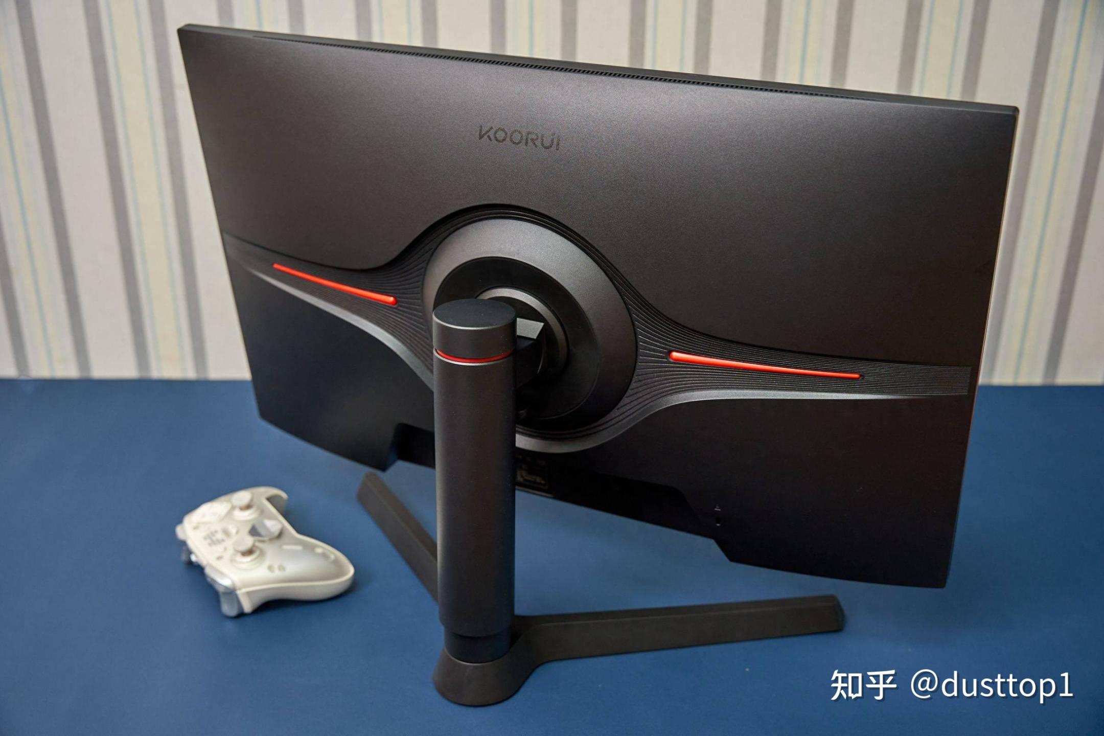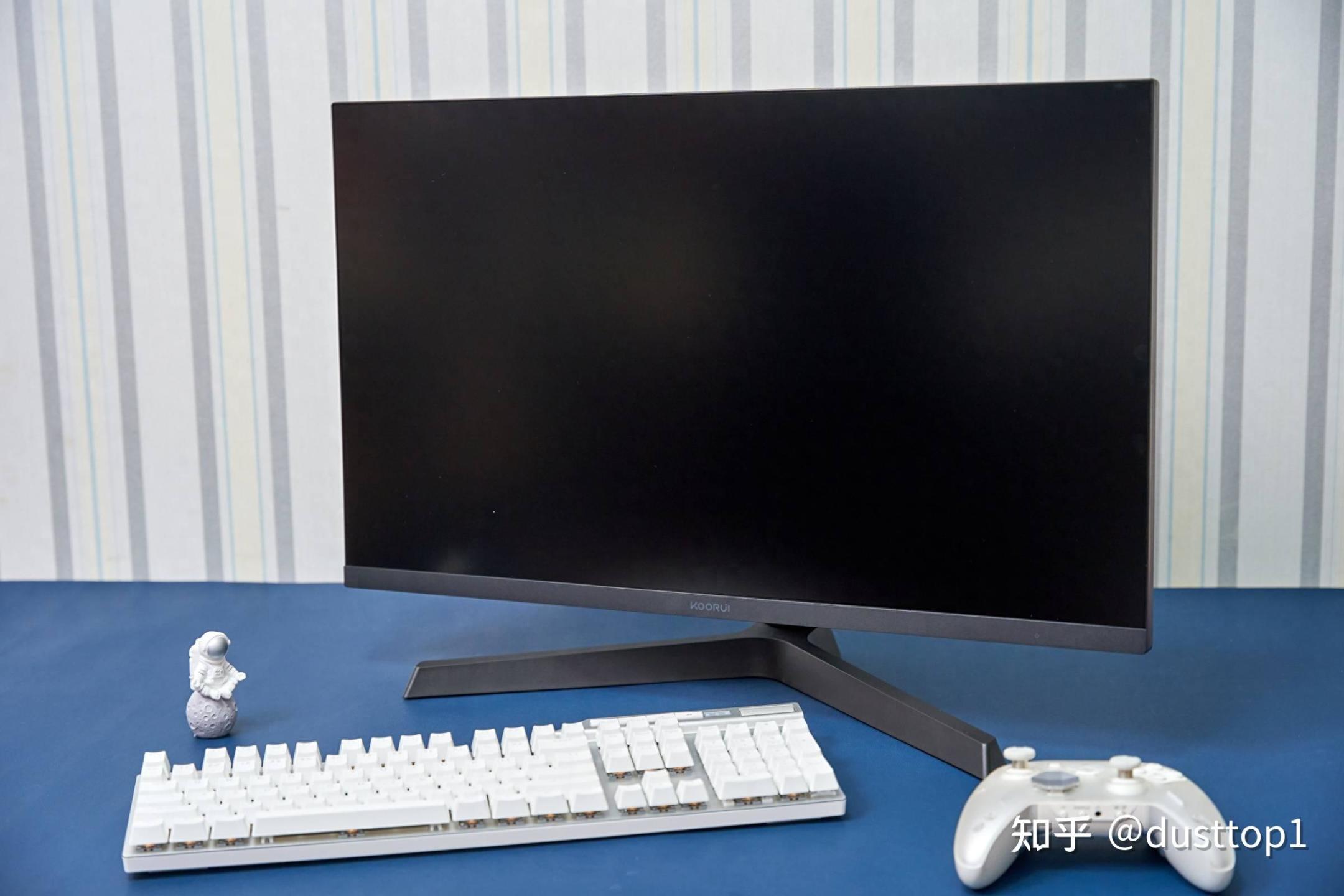 装好后的显示器颜值不错,千元售价的设计并不拉胯。显示器整体黑色,正面下边框除了“KOORUI”logo没有其他装饰,简洁中透出硬派气质。