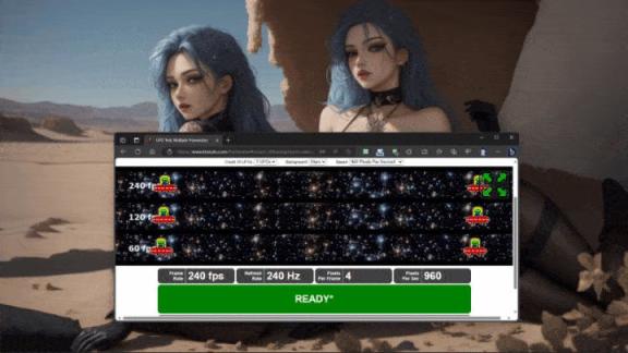 使用UFO TEST来测试,处在240FPS测试轨道的UFO显示最流畅。