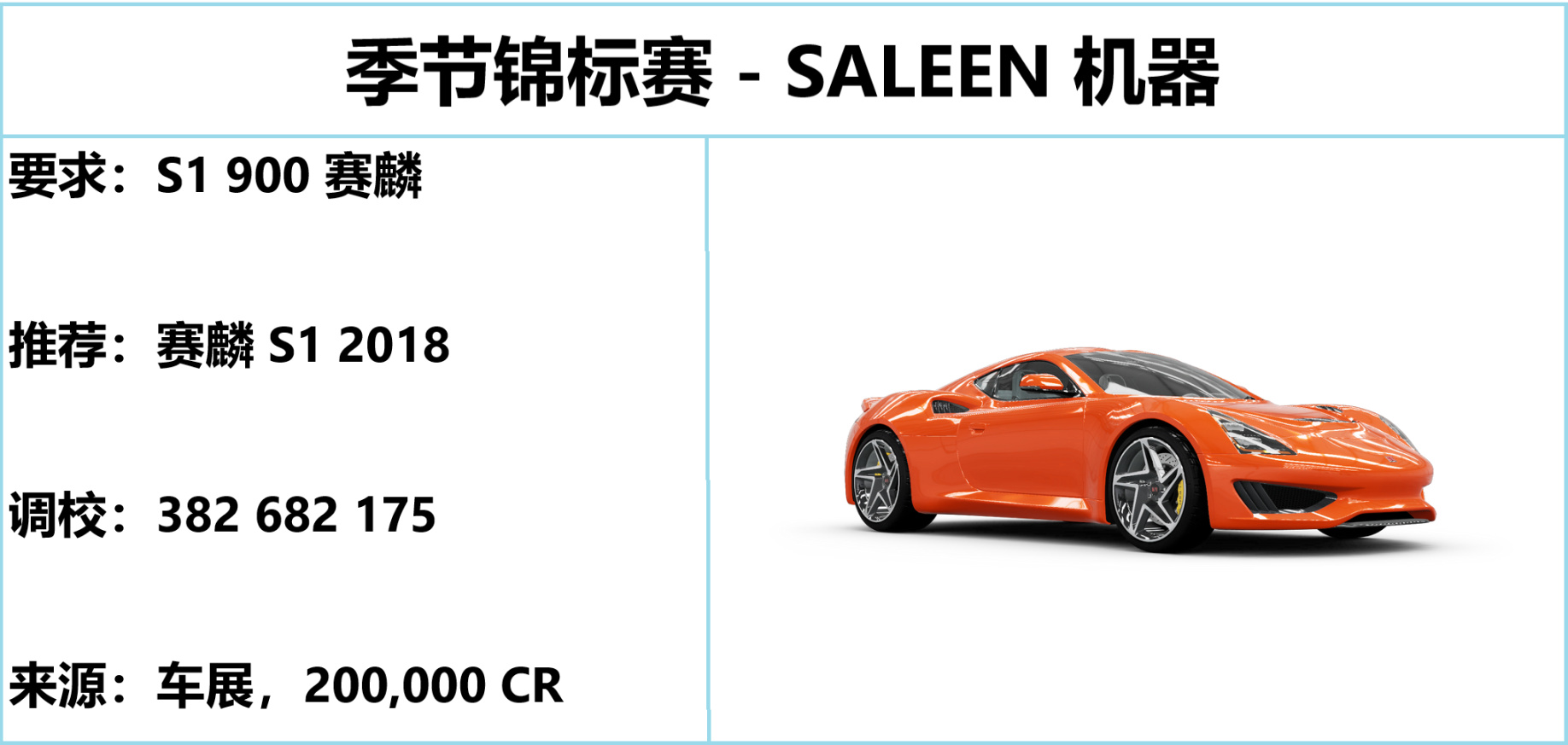 本季的三個特技都是要求用這臺車,就一張圖包含全部信息了。