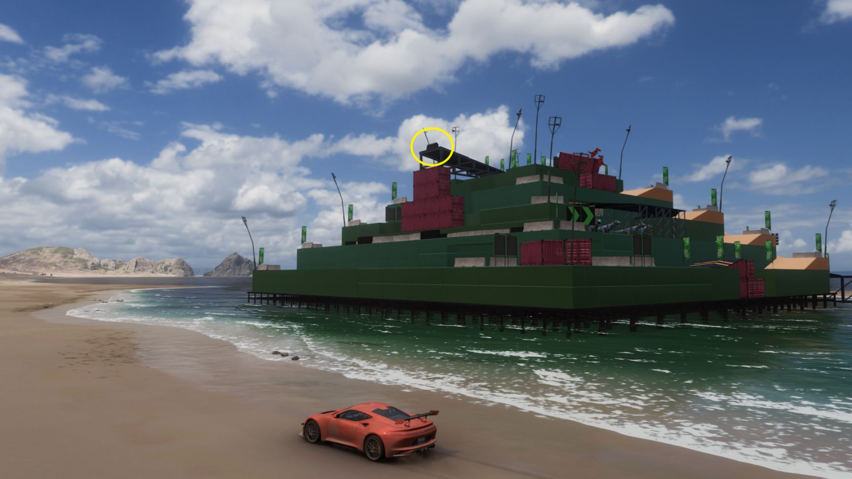寶箱被擺放在海上平臺的特技賽道盡頭,需要玩家通過前面的關卡才能獲取