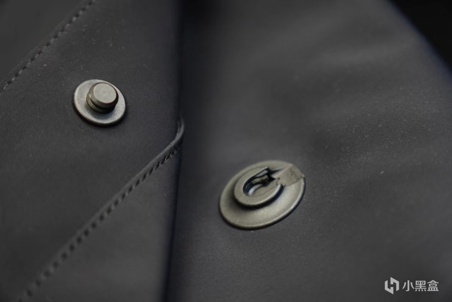 这个扣我见到的第一眼有点意思,磁吸的,我当时还纳闷要这个磁吸扣有啥用????直到我第二天背着他上班的时候我发现,这个扣是真的有用,因为我上班通勤是做地铁,所以在过安检的时候我直接就把这个扣开一扔就直接过安检,侧滑打开很方便。之后我一了解原来是这样的啊这个扣采用了德国的Fidlock专利,在我暴力的拉扯下是扯不开的,但是单手能打开。让我意外的是这个磁吸扣在这个包上竟然设计了两个,在前袋方面也设计了一个磁吸扣。