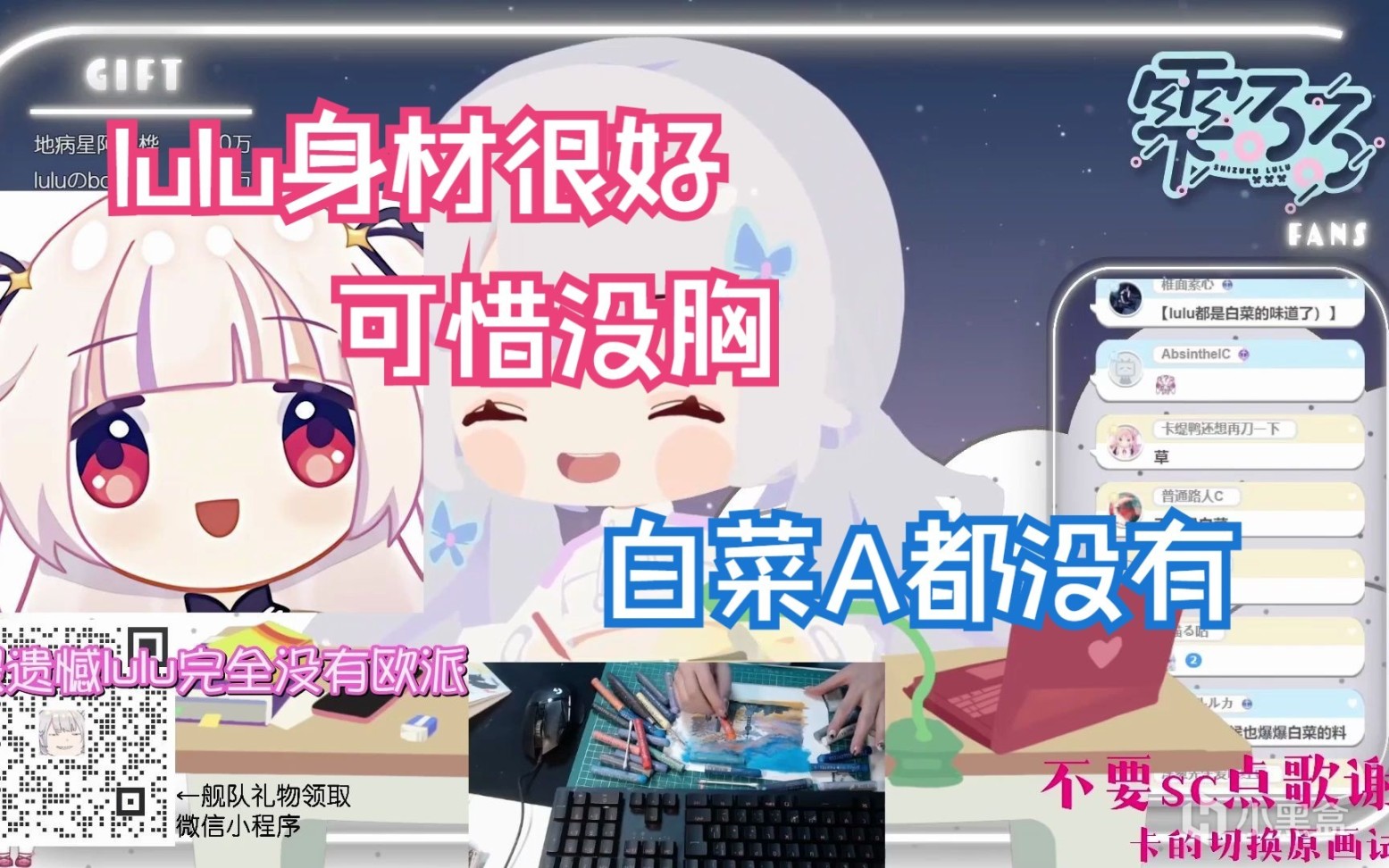 明明身为日V,却具有非常优秀的中文能力,所以在夏诺雅、凤玲天天等友人直播间不仅担任房管,有时还会负责同传(字幕组同传摸鱼大成功)。