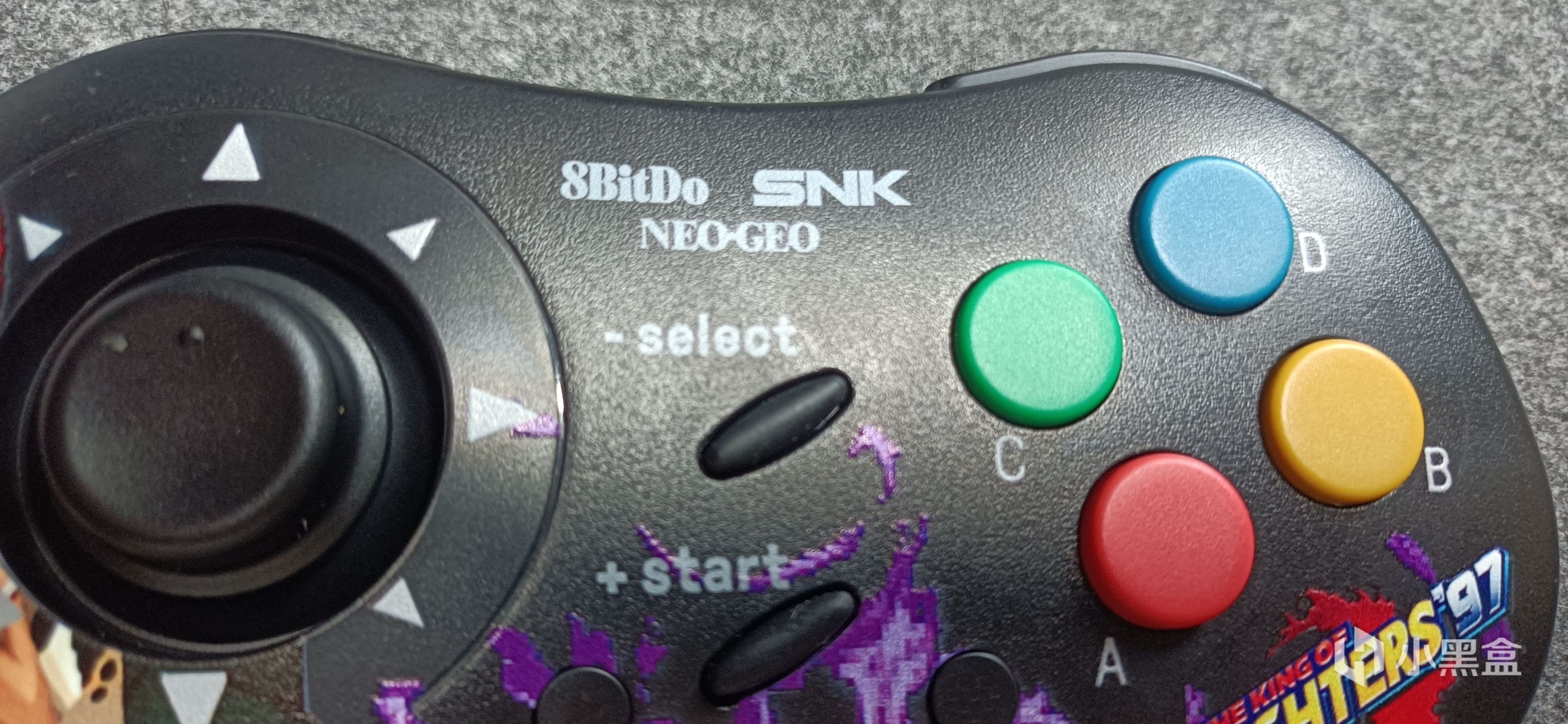 右边ABCD按键是比较常见的硅胶材质,不过相比于xbox的导电胶按键,NEOGEO把按键做成平面,缩短了触发力度,让玩家可以更快打出操作。