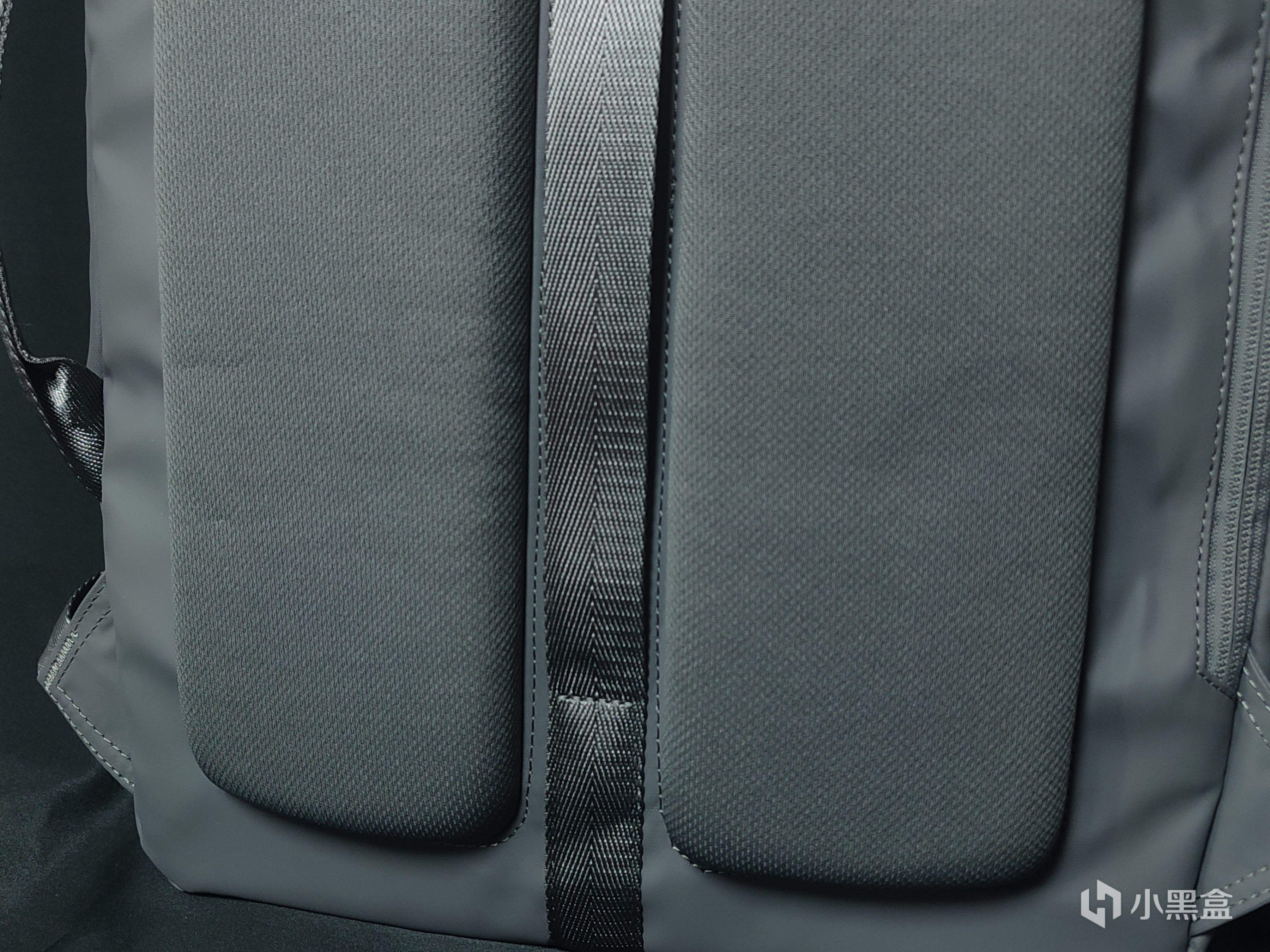 背后这块区域为了防止背包里的东西与肌肤“亲密”接触,同时为了提高背部与背包接触的舒适度,做了两块很厚的缓冲棉,这两块所使用的材料不清楚,不过实际体验对于背部的缓冲是起到了很大的作用,并不是很软,但背上过后会觉得很贴合。