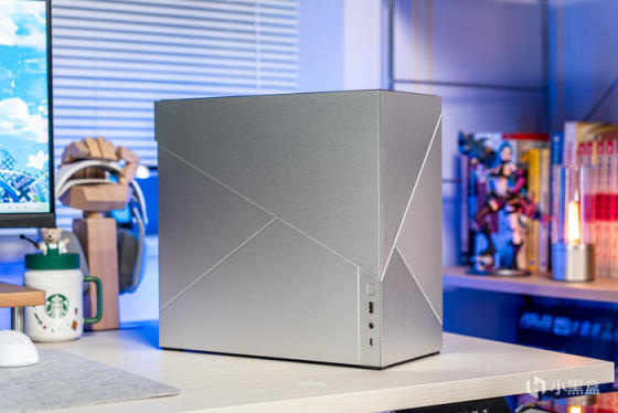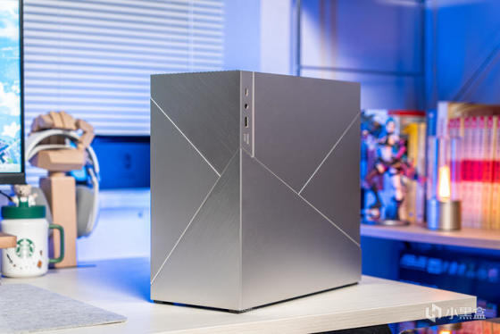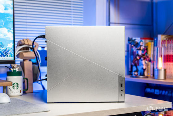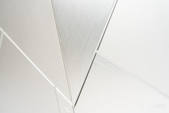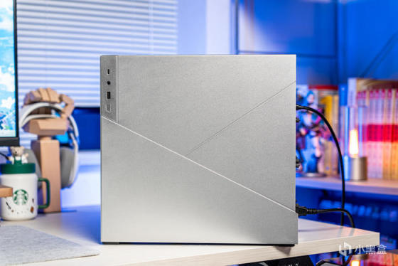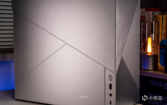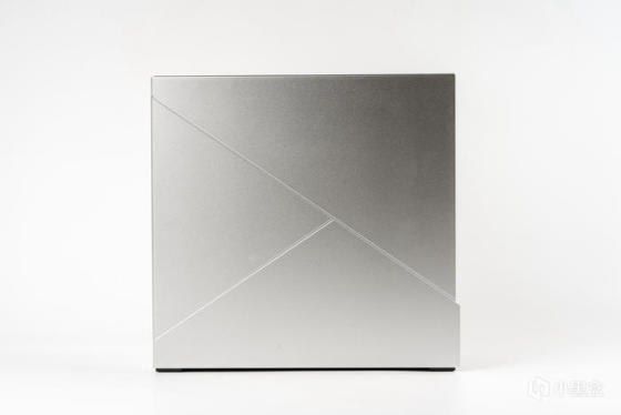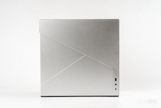 左侧面板也有两条开槽设计增加几何线条,右下角是前置IO,左上角有多余的面板延伸是为了安装和拆卸方便,因为整机外观组件都采用了碰珠安装设计,无需工具拆装非常便利