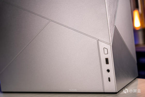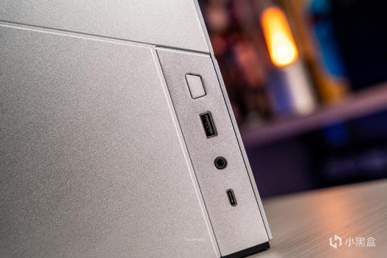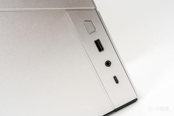 左侧面板上的前置IO,包含开机键、USB3.0、耳机麦克风一体口、USB3.1的高速Type-C口