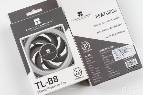 abee M19 小小MATX机箱为达到优化尺寸的目的,机箱底部和尾部都只设计了8CM风扇的支持,选来选去也就只有猫头鹰和利民的8cm风扇能入眼,最后在性价比的驱使选用了利民的TL-B8,毕竟这也是采用S-FDB V2轴承,2200PWM转速的好风扇