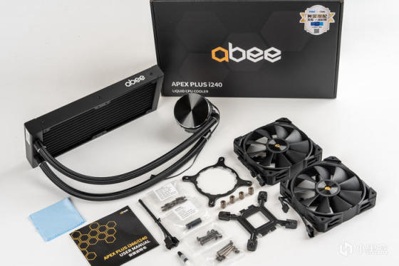 APEX PLUS I240水冷的全家福,铝加工优化的产品确实分外有质感