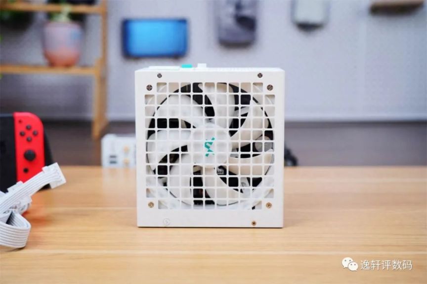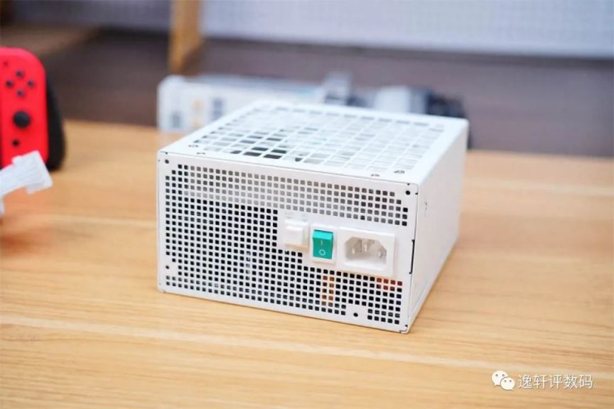 在電源尾部的方形格柵區域,除了青藍色的標準開關鍵外,還有一個Hybrid模式按鈕。當開啓時,在低負載使用場景下,電源風扇會自動停轉,不僅可以延長風扇壽命,還能達到0噪聲的效果。