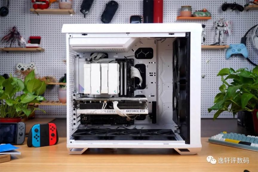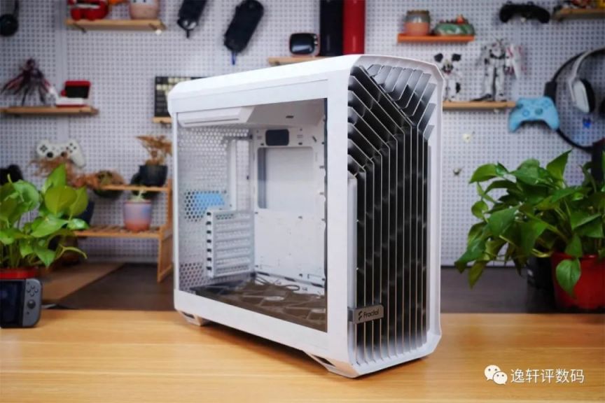 白色款分形工藝Torrent 機箱真的太帥了,不得不佩服設計師的審美。機箱具有非常大的內部容積,提供了充足的發揮空間,因此裝機體驗非常舒適。即使在機箱前面安裝了風扇,仍然可以容納長度達到423mm的顯卡,而散熱器的限高也有188mm。因此,無論顯卡還是散熱器,都不會出現裝不下的情況。