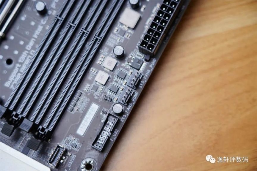 在24Pin的供電插座下面有兩個4Pin的風扇供電插座,還有兩個機箱前置的USB插座,其中一個是Type-C接口,支持USB 3.2 Gen 2 x 2標準,也就是具備20Gbps的帶寬。這樣的設計讓這款主板能夠輕鬆應對各種高速數據傳輸需求,同時也爲各種高性能計算機提供了強有力的支持。