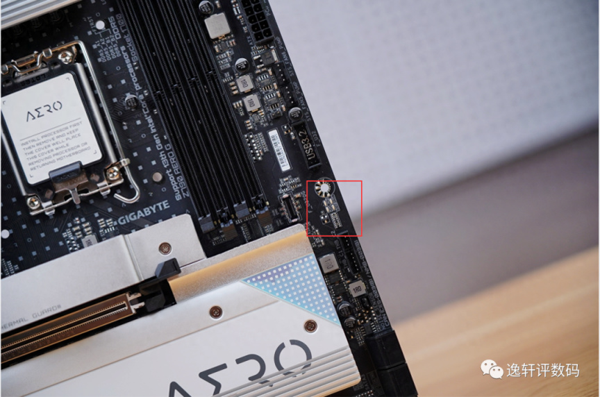 其中4個SSD安裝位採用了快拆設計,有一個是需要固定散熱盔甲可以只能只用螺絲固定。技嘉雪鷹Z790 AERO G DDR5 WIFI6 主板提供了四個SATA3.0接口,方便用戶連接高速存儲設備。此外,該主板在底部還配備了一個重啓按鍵,用戶可以通過按下該按鍵快速重啓計算機。