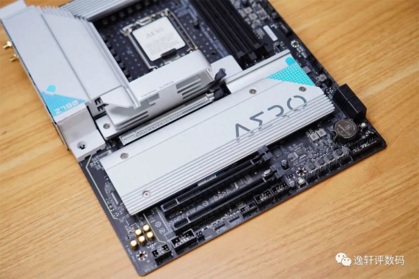 技嘉雪鷹Z790 AERO G DDR5 WIFI6 主板上最靠近處理器的一個M2接口,最大支持PCIe5.0 x 4規格,其規格最大支持25110。此外,技嘉爲其配備了一座巨大的散熱塔,其材料和尺寸均相當誇張。