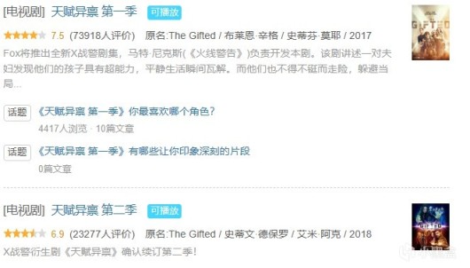 剧集有《天赋异禀》共2季,还有《Legion》(译为“军团/大群”)共3季(这到没听说过,也没看过)。