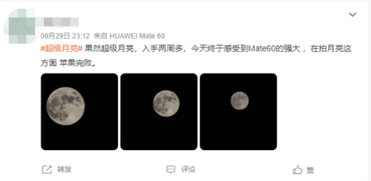 众所周知,目前最热门的机型就是华为Mate 60系列了,正好又赶上中秋节,于是很多Mate 60系列的用户在网上晒出自己拍出的月亮大片。